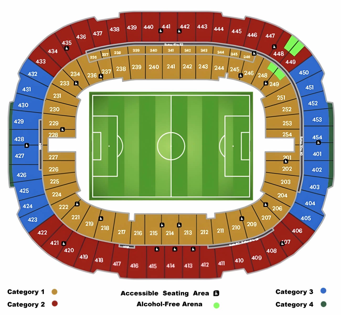 Block 203, Block 217, Block 241, Block 406, Block 451, Category 1, Category 2, Category 3, Corner, Half Way Line, Hospitality, Long Lower, Long Upper, Short Lower, Short Upper
